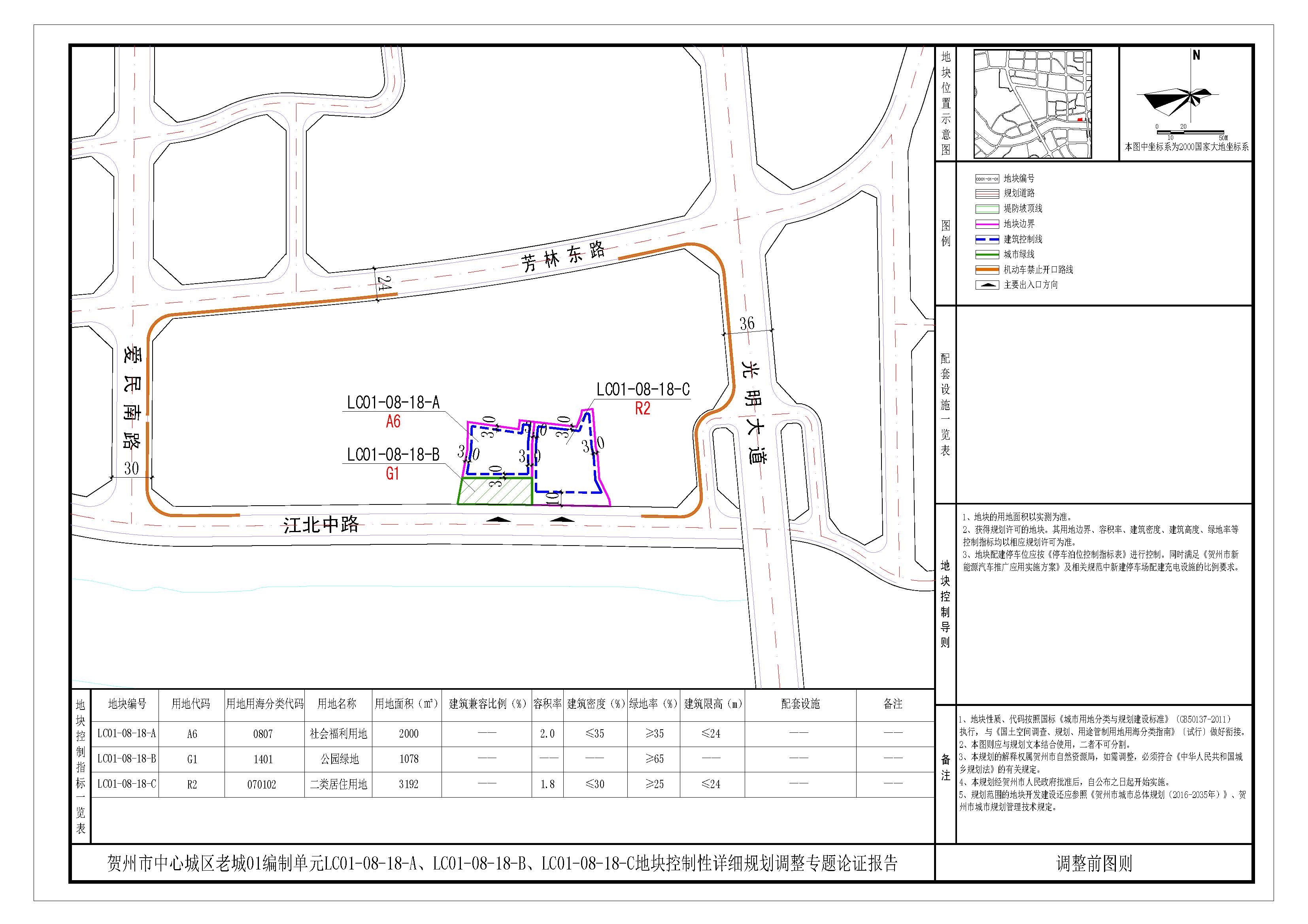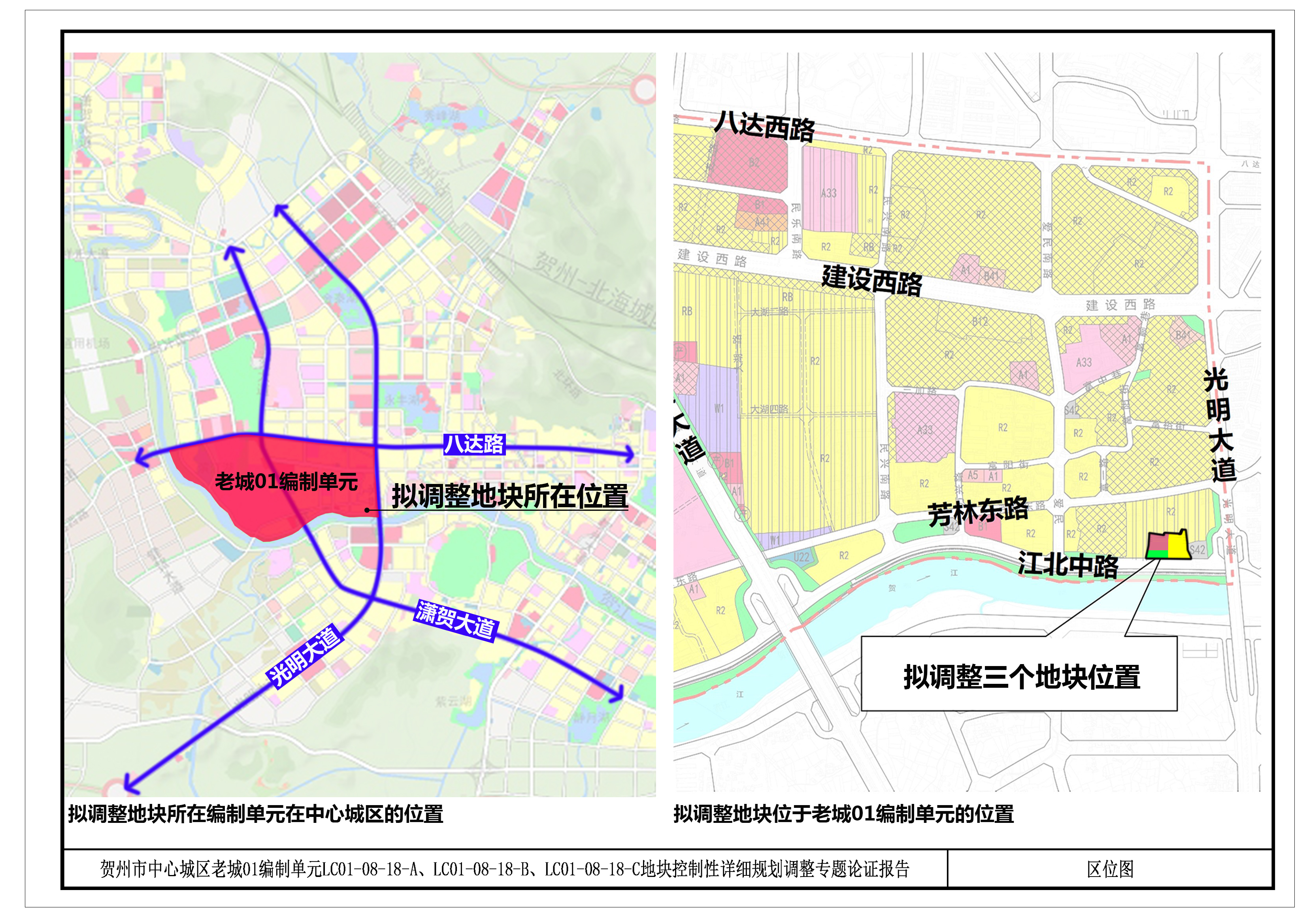 根据《贺州市中心城区老城01编制单元控制性详细规划》,调整前:
