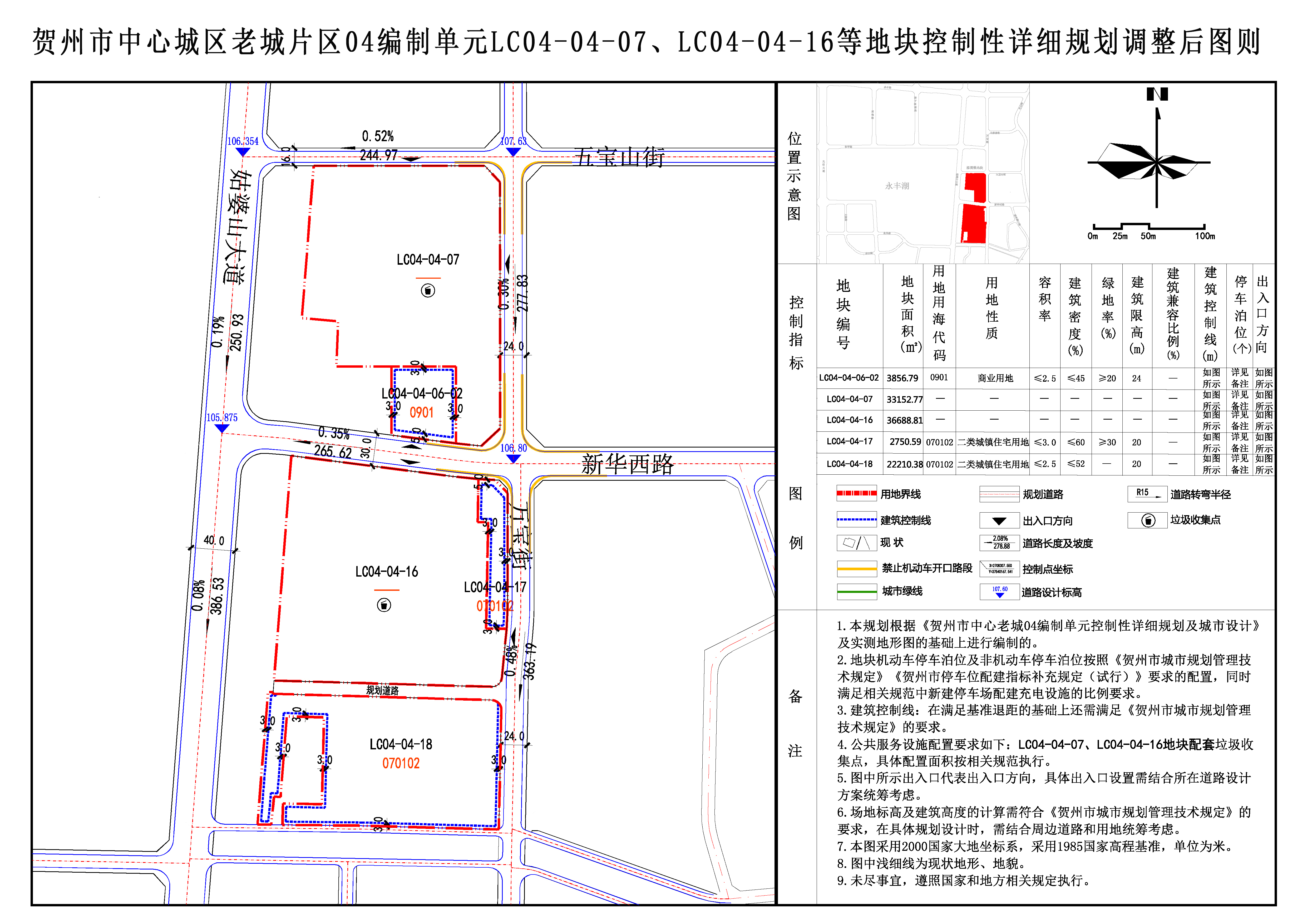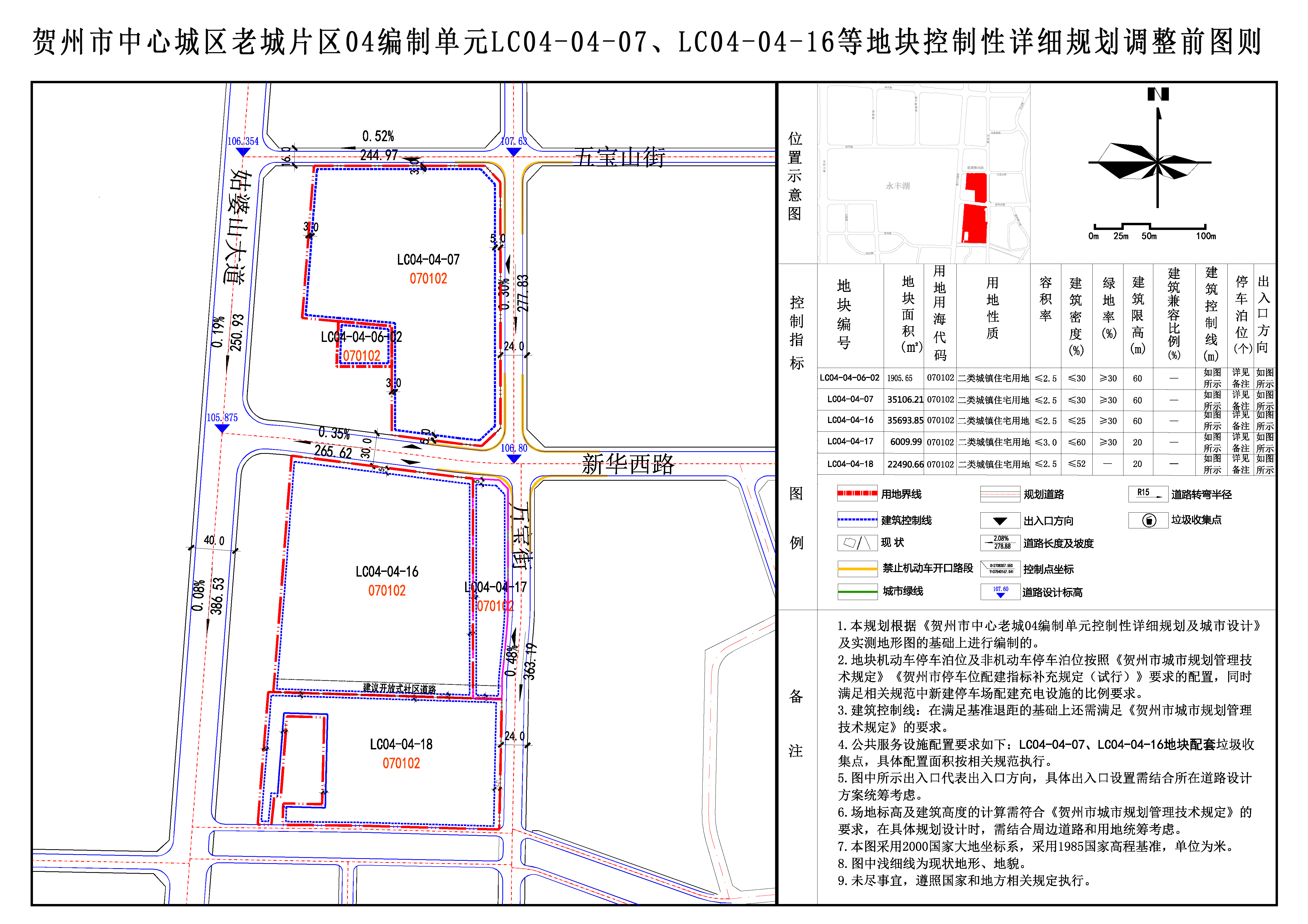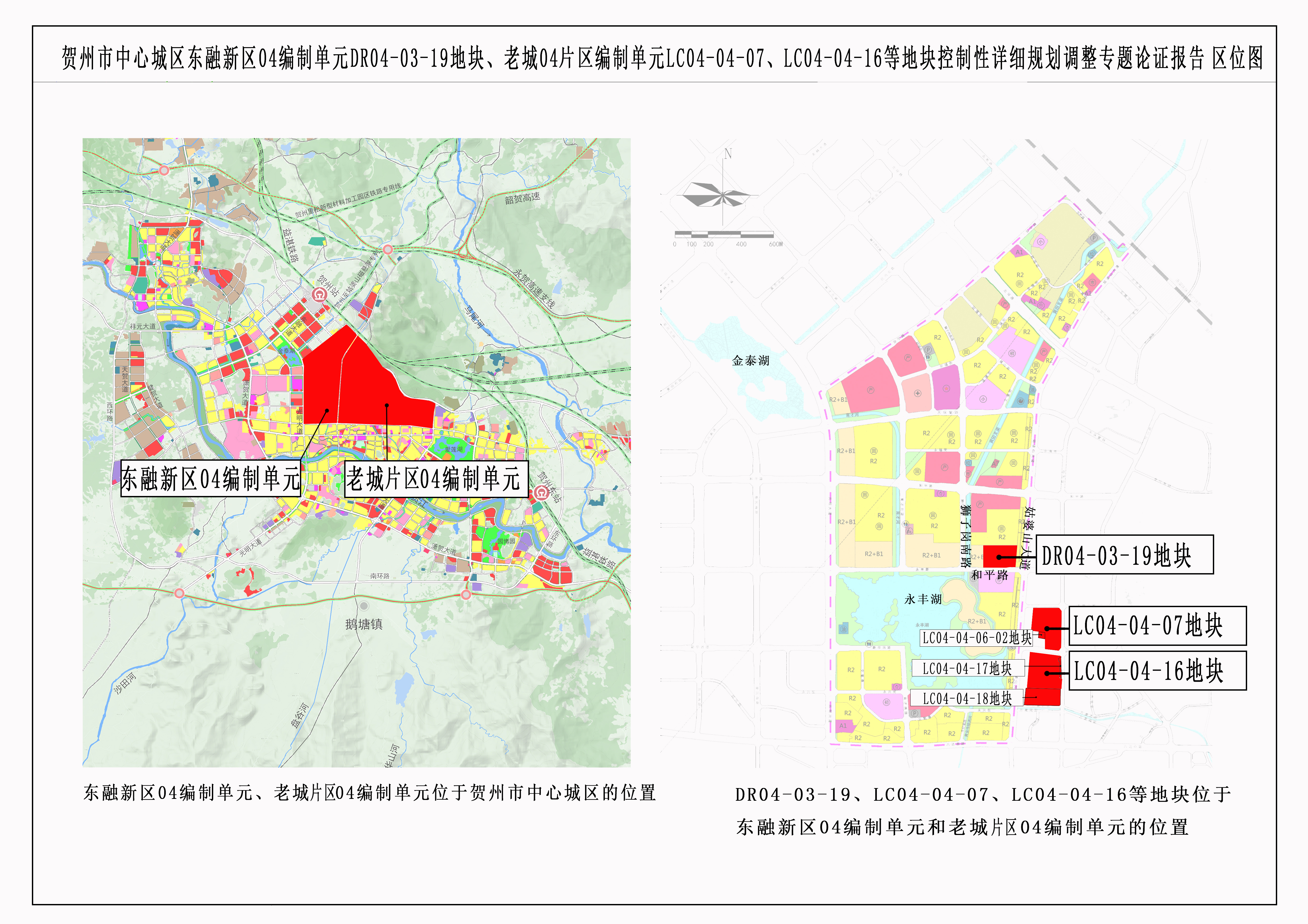 根据《贺州市中心城区东融新区04编制单元控制性详细规划及城市设计》《贺州市中心城区老城片区04编制单元控制性详细规划及城市设计》,调整前各地块指标如下: